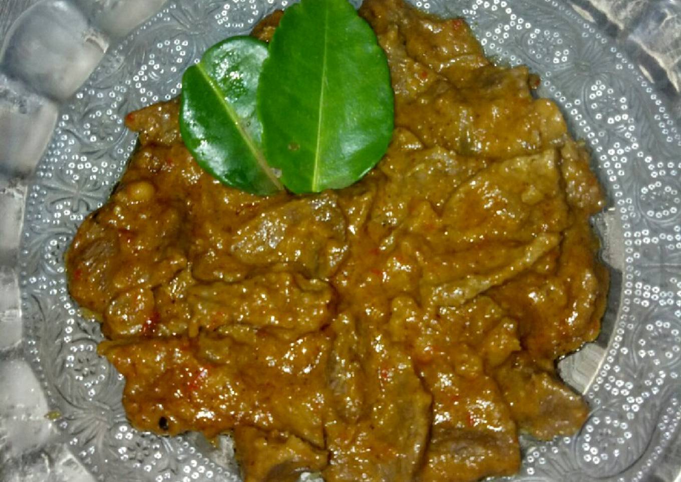 - Tambahkan santan dan air secukupnya, masukkan daging sapi dan diamkan sampai airnya habis. sambil di aduk sesekali. koreksi rasa.