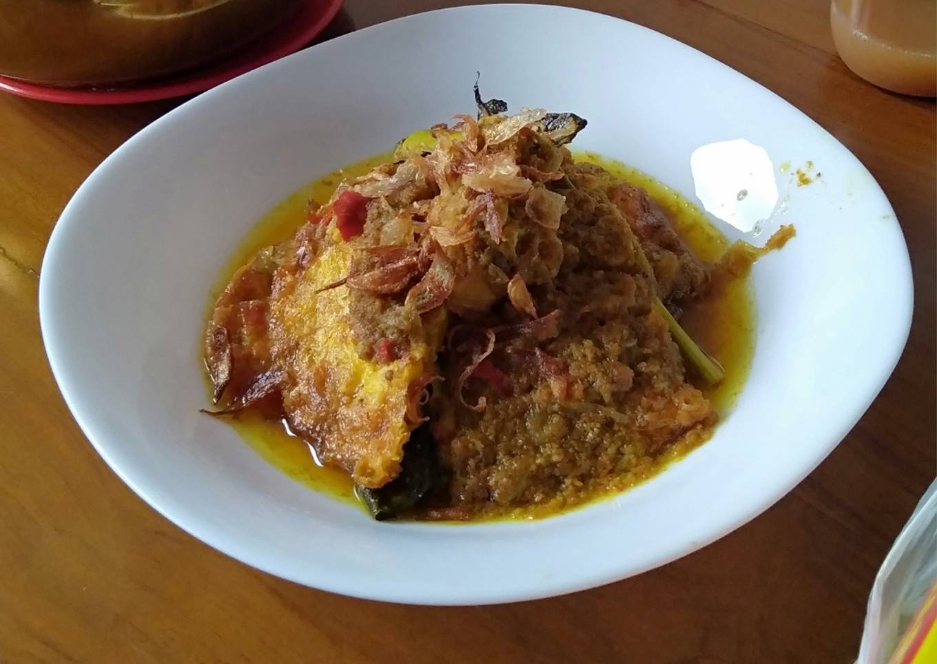 - Panaskan minyak masukkan bawang irisnya tunggu agak kering lalu masukkan bumbu halusnya dan laos,serai,salam tumis hingga harum,masukan air secukupnya biarkan mendidih