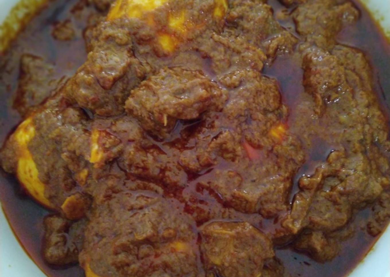 - Rendang daging telor siap disajikan