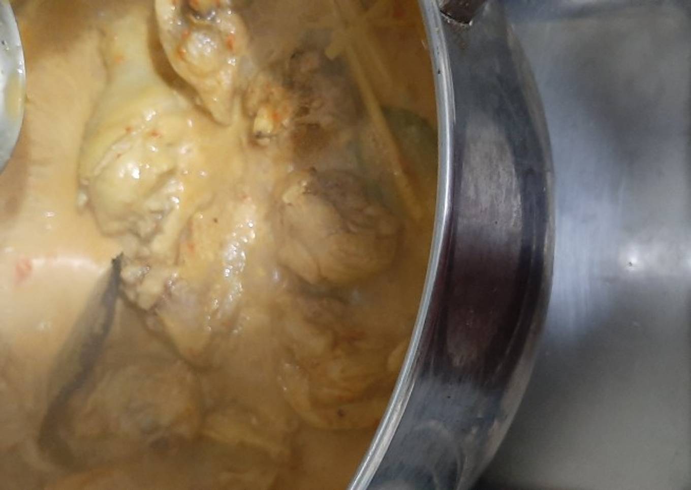 - Masukkan tumisan bumbu ke dalam ayam yang telah direbus