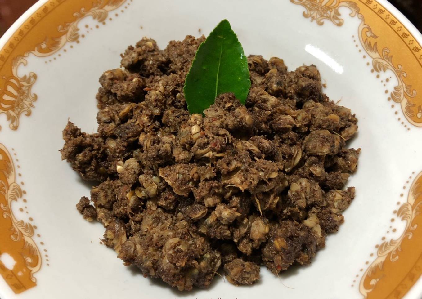 - Setelah santan menyusut masukkan ambu ambu. Aduk rata, lalu tunggu hingga rendang mengering. Jangan lupa diaduk agar tidak gosong