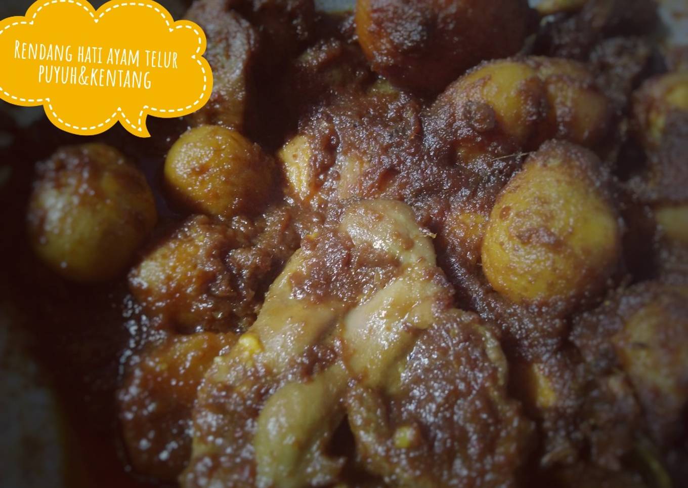 Banyak hal yang sedikit banyak mempengaruhi kualitas rasa dari Rendang hati ayam telur puyuh&kentang, mulai dari jenis bahan, kemudian pemilihan bahan segar, hingga cara membuat dan menghidangkannya. Tak perlu pusing jika mau menyiapkan Rendang hati ayam telur puyuh&kentang enak di rumah, karena asal sudah tahu triknya maka hidangan ini dapat jadi sajian spesial. Seterusnya adalah gambar berkaitan dengan Rendang hati ayam telur puyuh&kentang yang dapat kalian jadikan inspirasi.