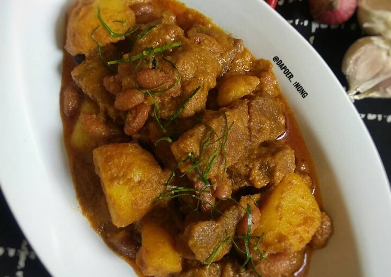 - Tambahkan kentang dan kacang merah. Masak hingga kuah mengental