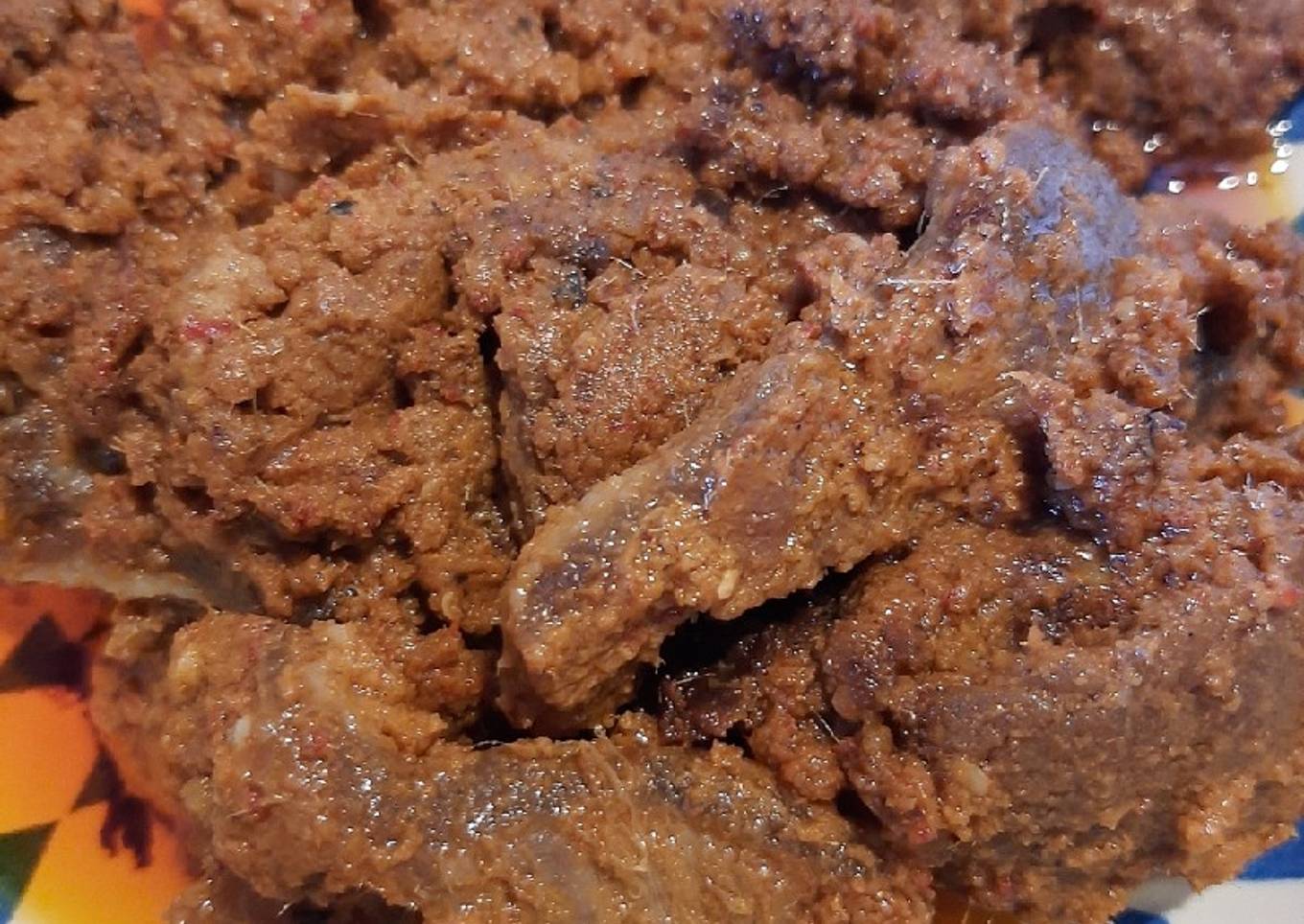- Setelah mendidih, masukan daging. Aduk terus perlahan dgn api sedang sampai santan menyusut (jangan ditinggal, di aduk terus perlahan saja) krna takut pecah santan. Test rasa.