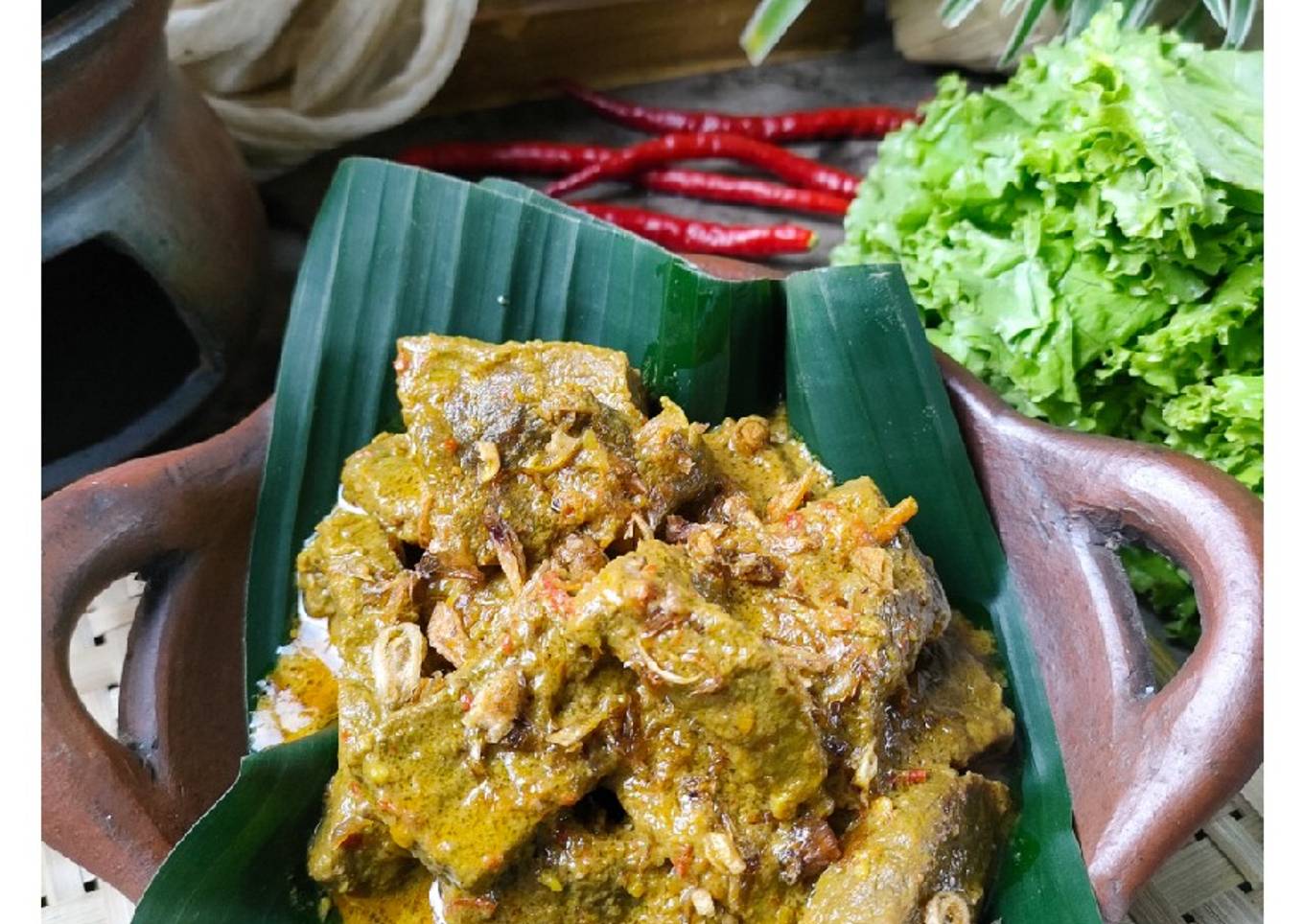 - Campur jadi satu dalam wajan daging, bumbu halus, bumbu geprek, dan daun2. Tambah santan encer. Masak smp daging empuk.